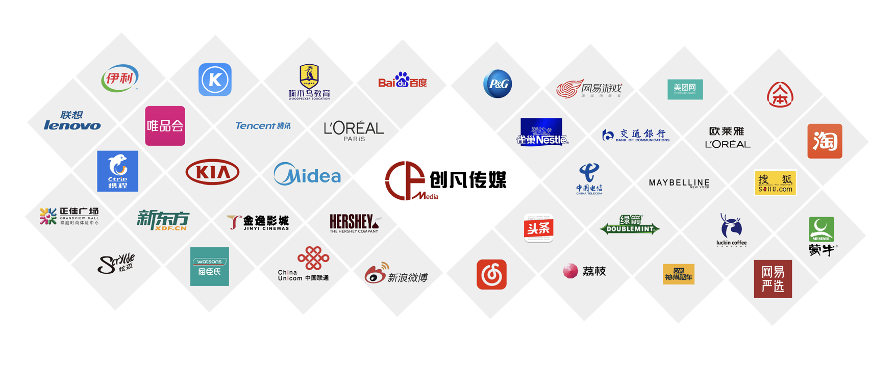 公司以“做品牌年輕化的好幫手”為使命,憑借敏銳的創(chuàng)意洞察、卓越的營銷策劃能力、豐富的活動經(jīng)驗(yàn)和全方位的媒體資源,為企業(yè)提供高效、精準(zhǔn)的一站式營銷推廣服務(wù)。已成為寶潔、騰訊、京東、中國聯(lián)通、字節(jié)跳動等世界500強(qiáng)品牌庫內(nèi)供應(yīng)商。